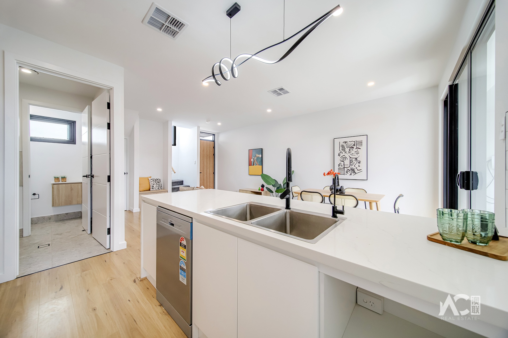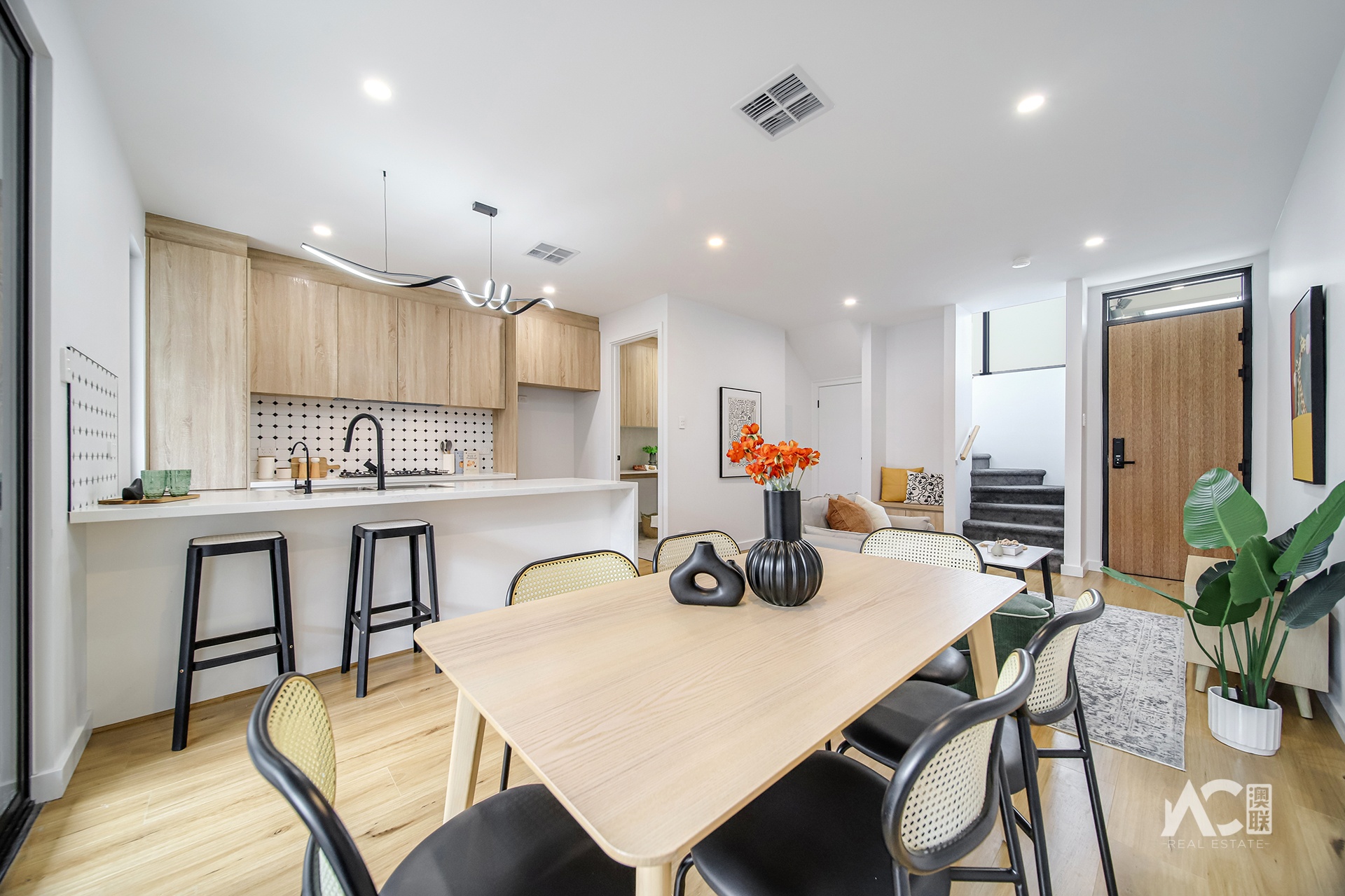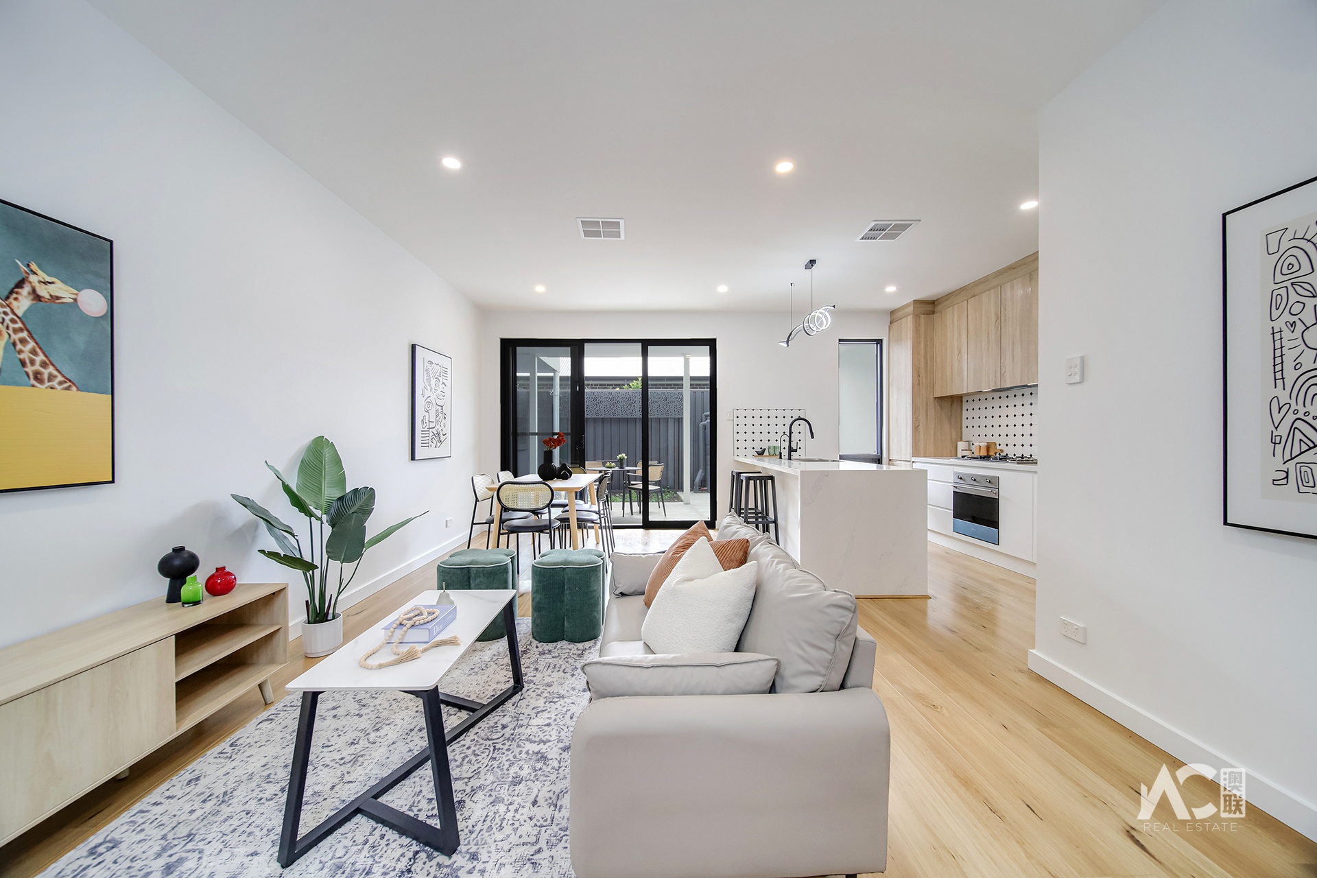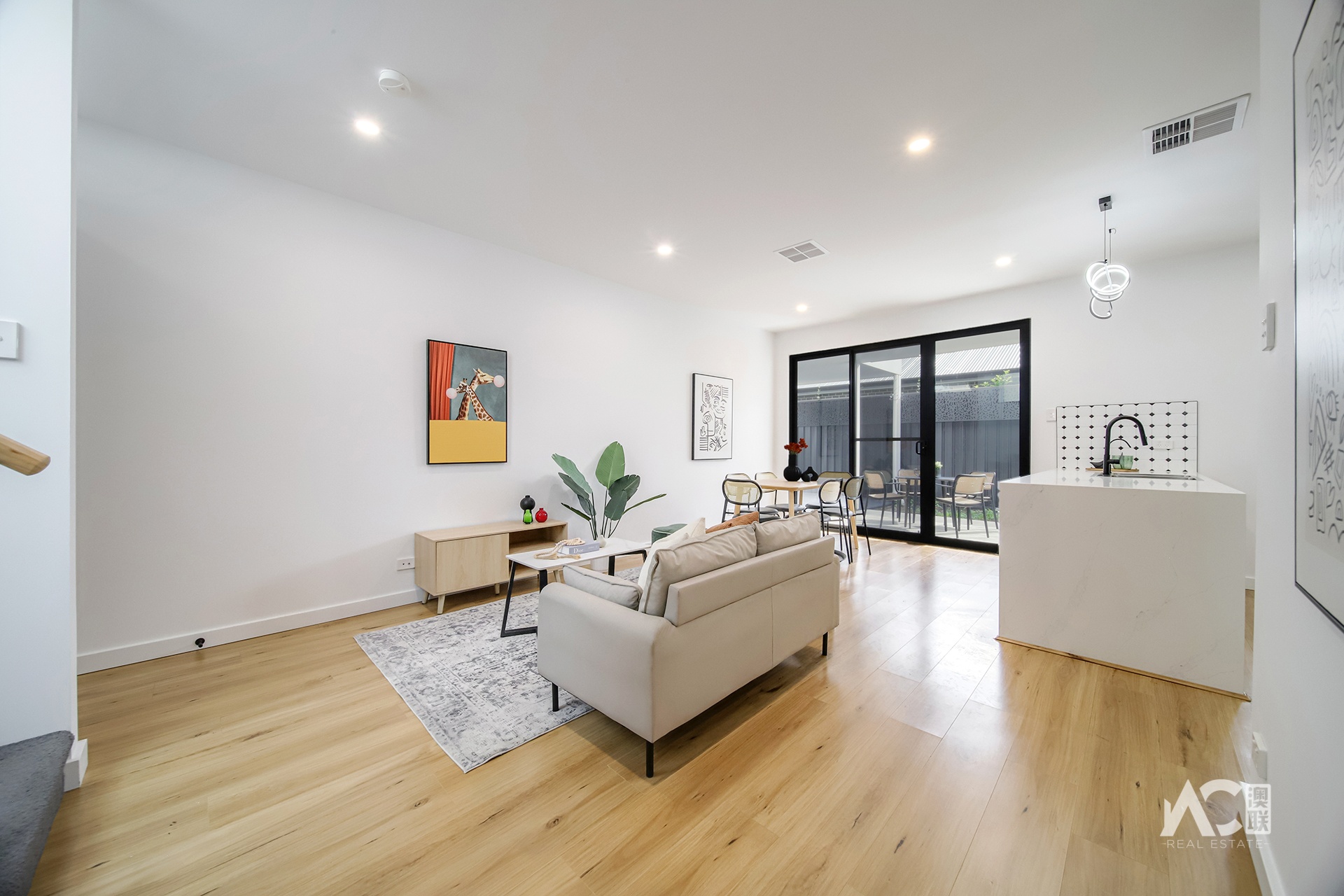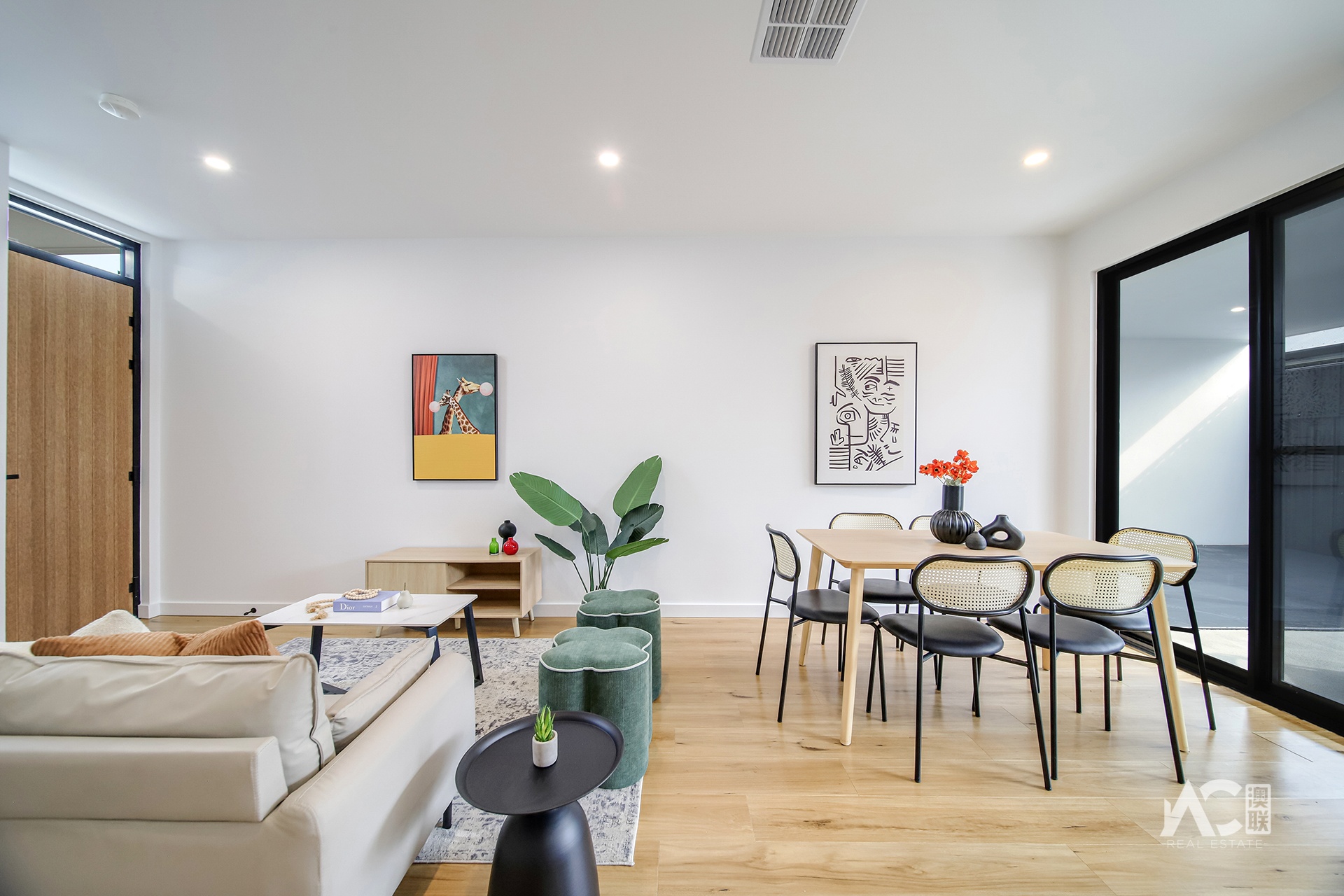 * Open-plan living and dining area filled with natural light